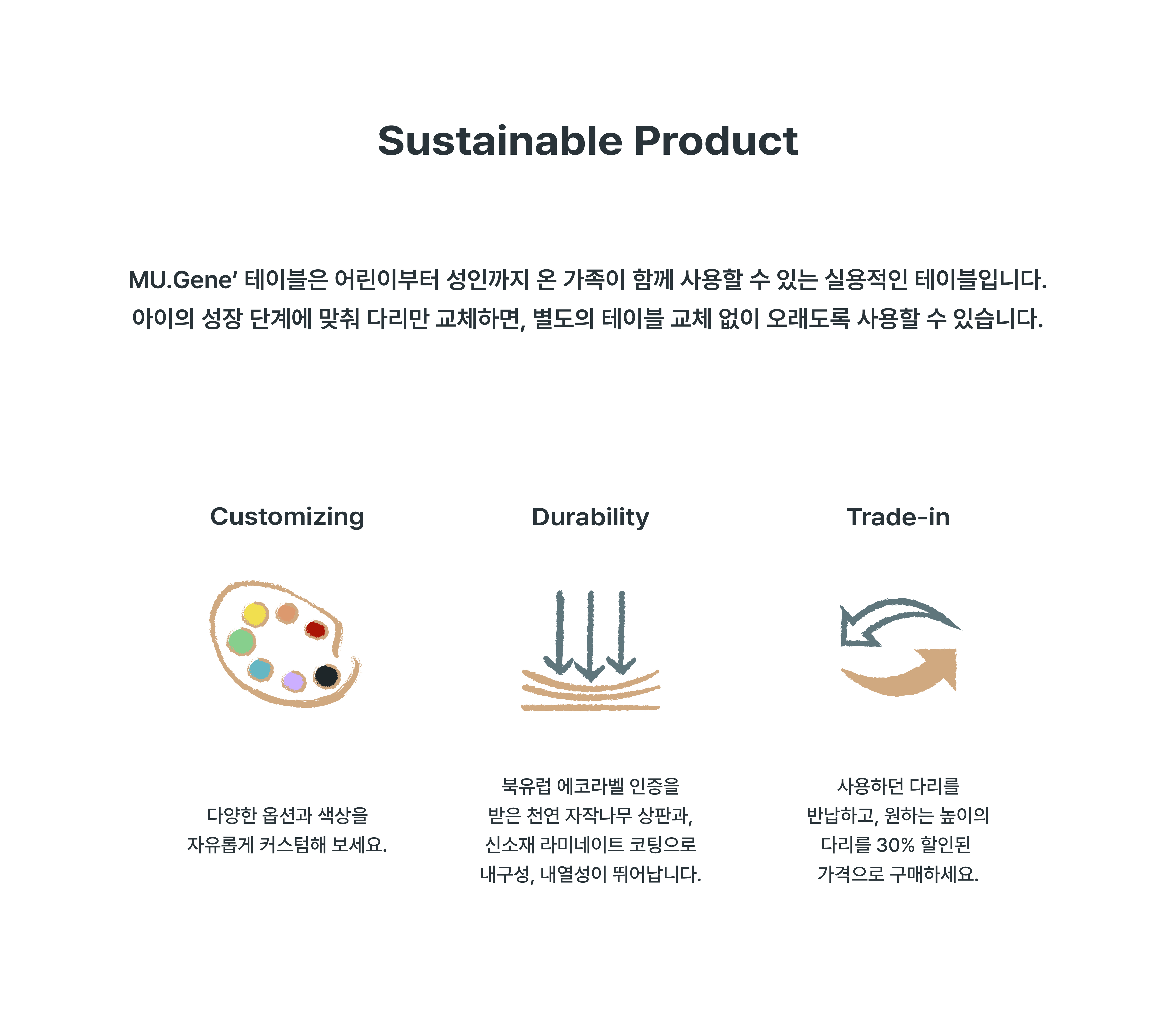 아이들의 키에 따라 추천드리는 MU.Gene' Table & MU.Chair 높이를 참고해주세요.