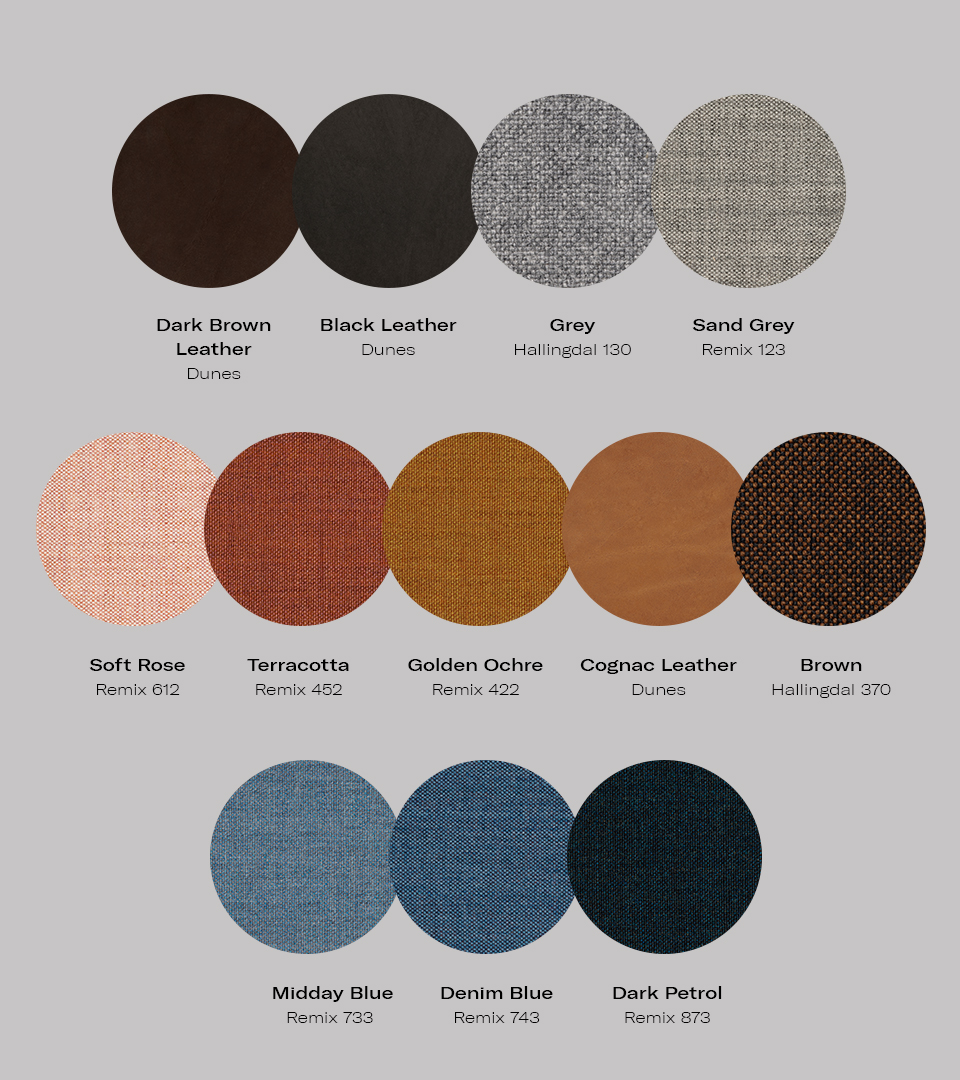Cross chair는 다양한 크바드라트 울 패브릭과 쇠렌센 레더의 아닐린 가죽으로 맞춤 제작할 수 있으므로 의자가 개인 인테리어와 자연스럽게 조화를 이룹니다.