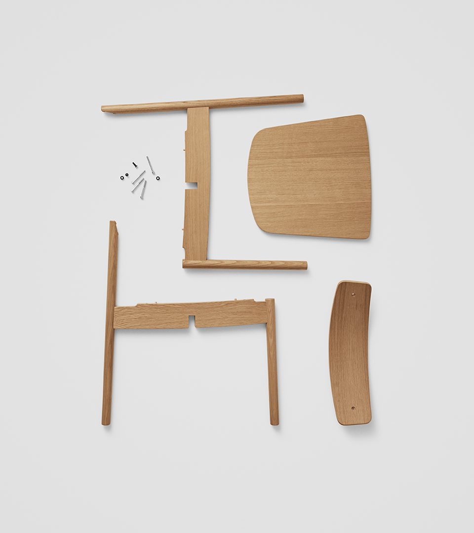Cross Chair is designed through TAKT’s Eco System Design principles and are shipped component based as flat packs. We can pack 5 to 7 times more products in the same volume and therefore minimise CO2e emissions during transportation. Cross Chair is eco-certified and produced using wood from sustainable forests and the full supply chain is certified. It is constructed for disassembly, meaning that all components are replaceable and worn parts can be replaced.