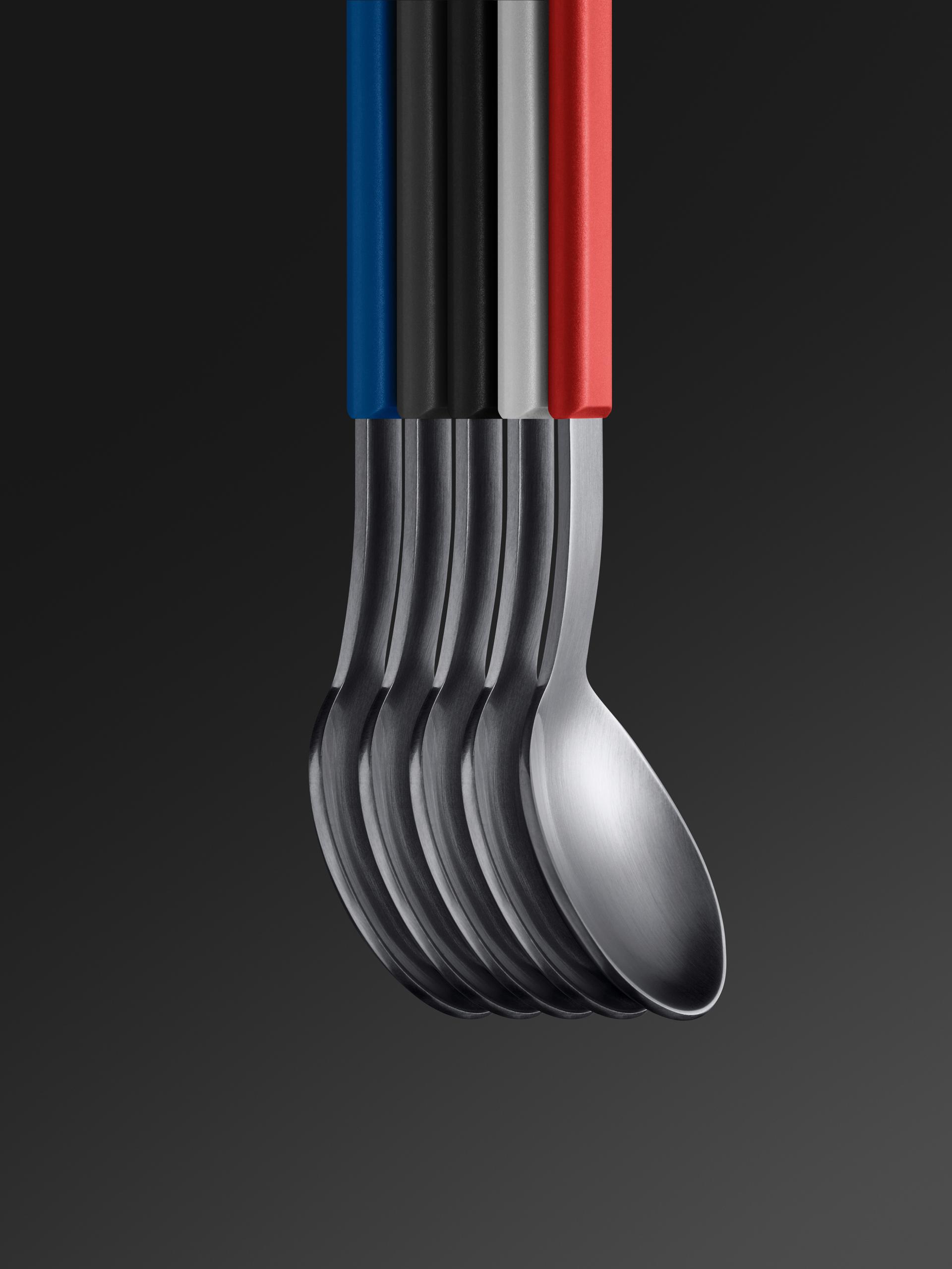 Now Mono Ring is back. Together with the Berlin designer Mark Braun , under the assessment of former designer Peter Raacke , Mono Ring was carefully revised and has been available again in five colors since 2018. Raacke's idea from 1962 remains strong: cutlery that doesn't need a drawer. Find out more about the whole story here.