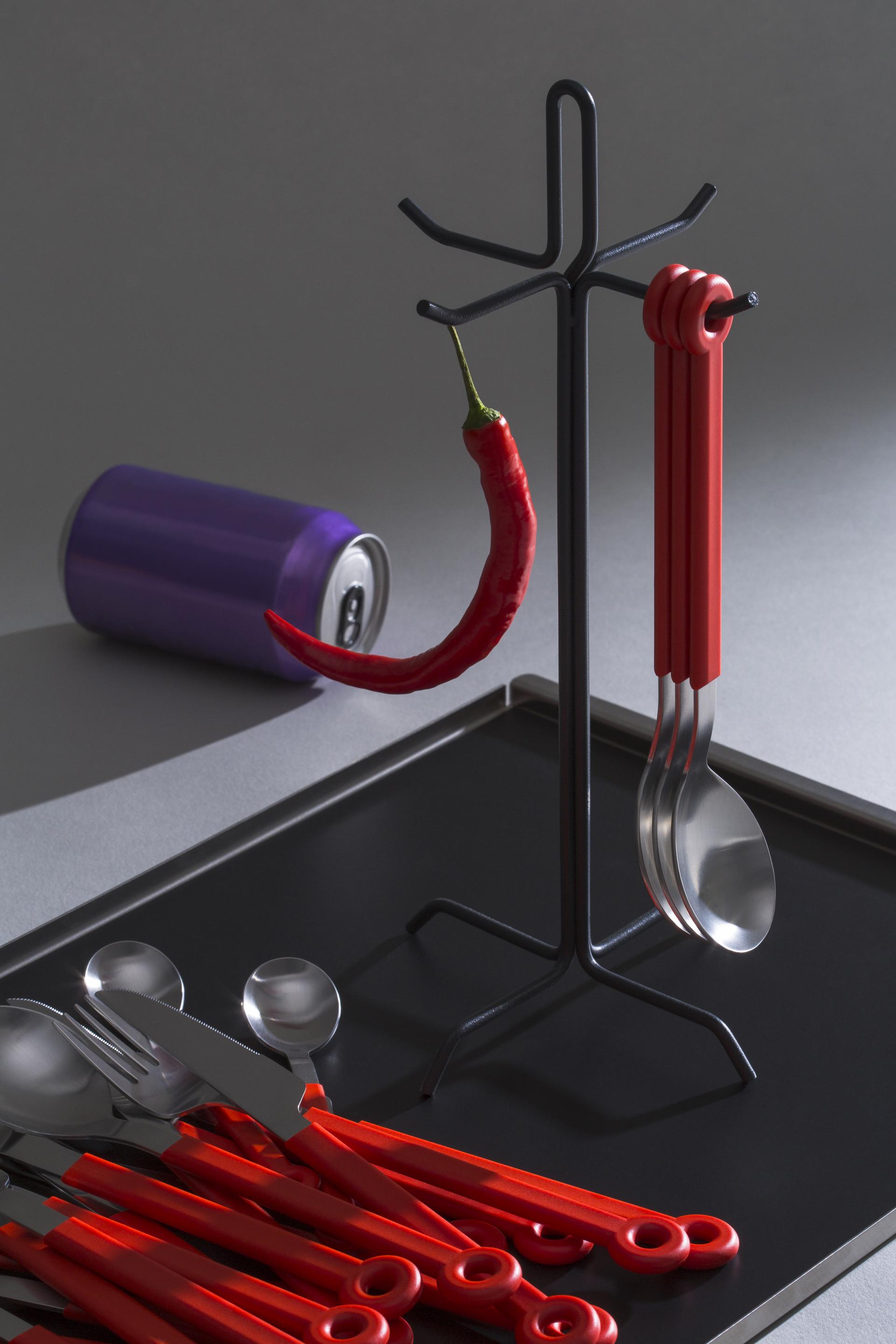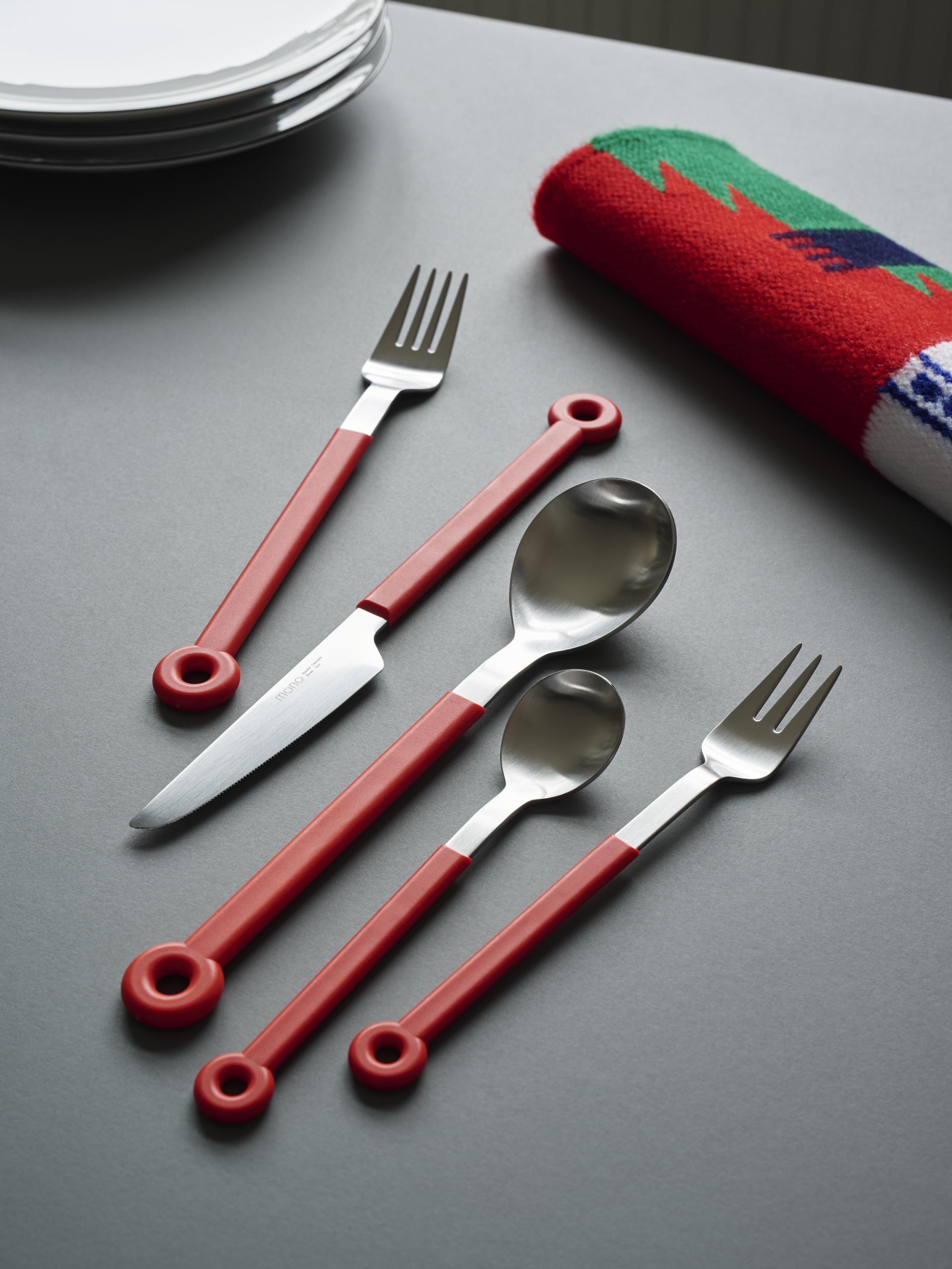 Now Mono Ring is back. Together with the Berlin designer Mark Braun , under the assessment of former designer Peter Raacke , Mono Ring was carefully revised and has been available again in five colors since 2018. Raacke's idea from 1962 remains strong: cutlery that doesn't need a drawer. Find out more about the whole story here.