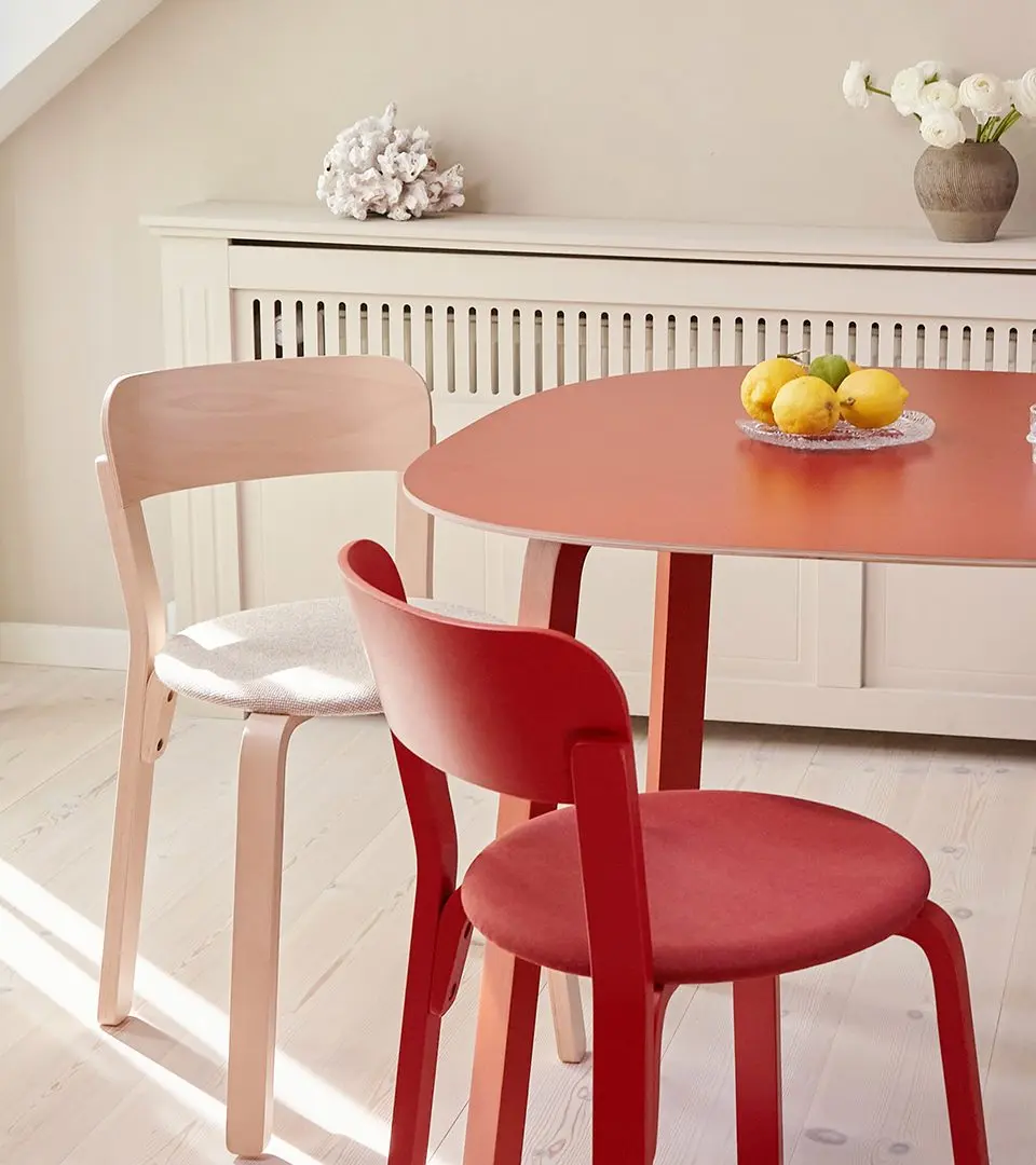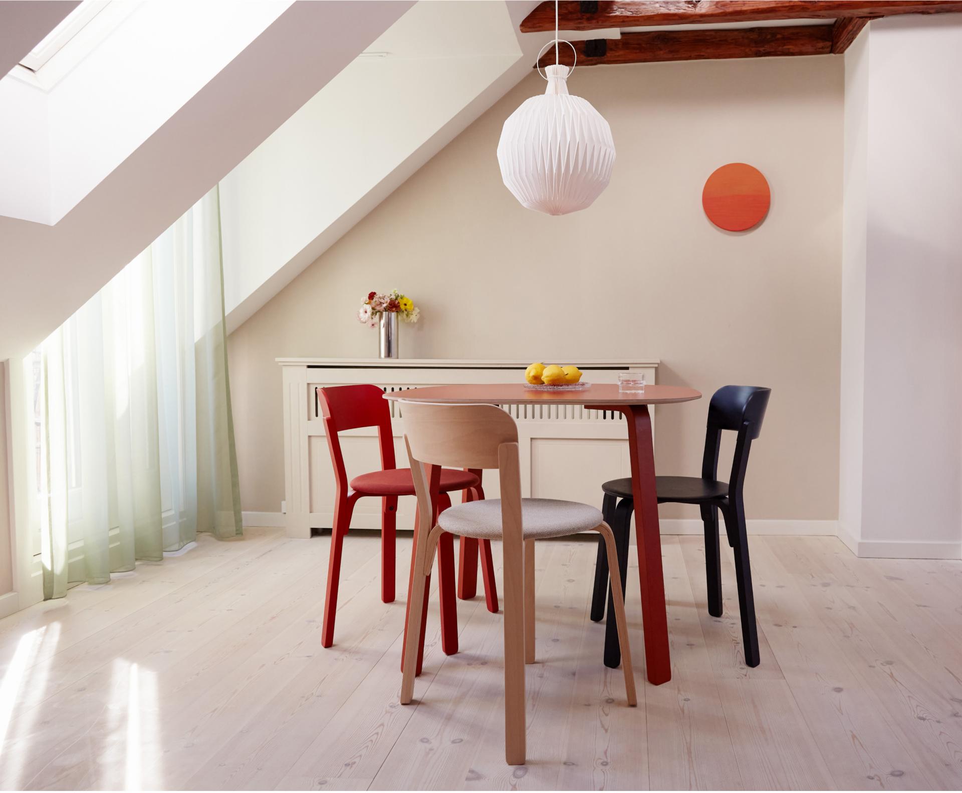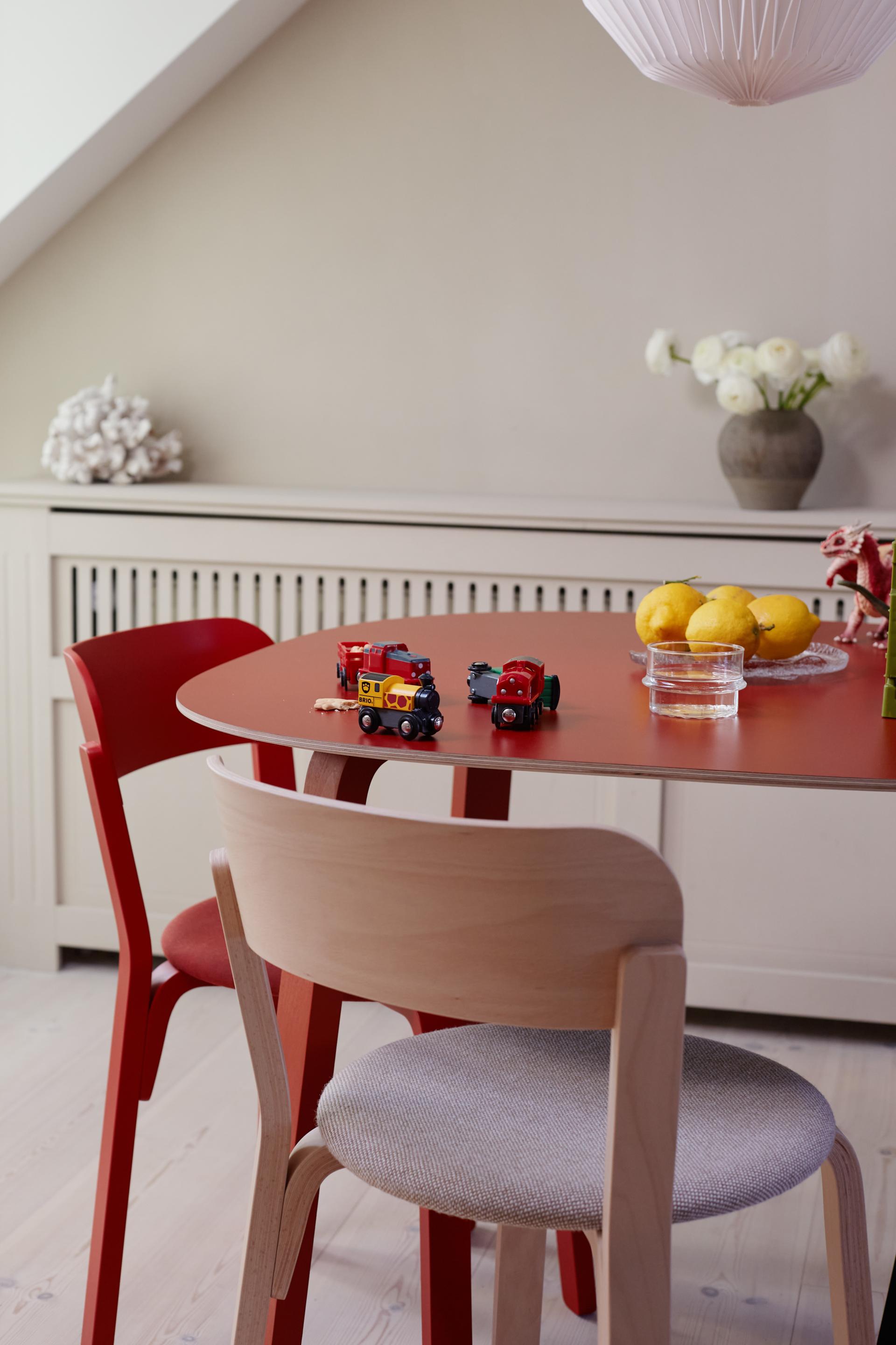 We have curated a selection of colours that all fit well together. The tabletop comes in three colour variations, Natural beech, Japan red and Black blue.