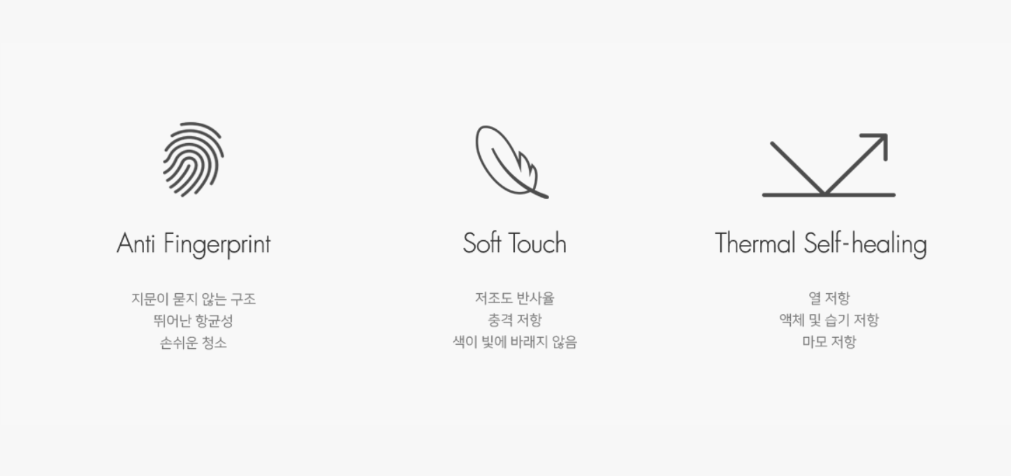 셀프힐링 기능이 있어 미세한 스크래치는 문지르기만 해도 사라지며