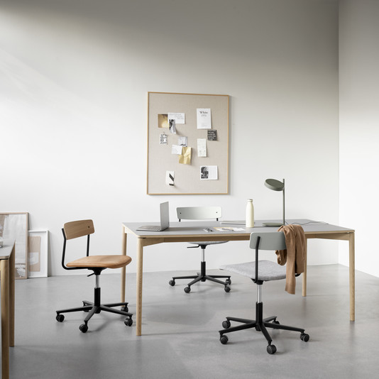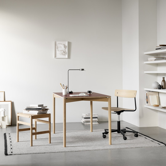 In addition to the standard variant with an oiled oak seat and backrest, Cross Task Chair is available with a range of upholstery fabrics and colour finishes, allowing it to complement any home interior style. The contemporary colours have been curated from a palette that TAKT developed in collaboration with visual artist Malene Bach, inspired by the historic colours of the Scandinavian cityscape.