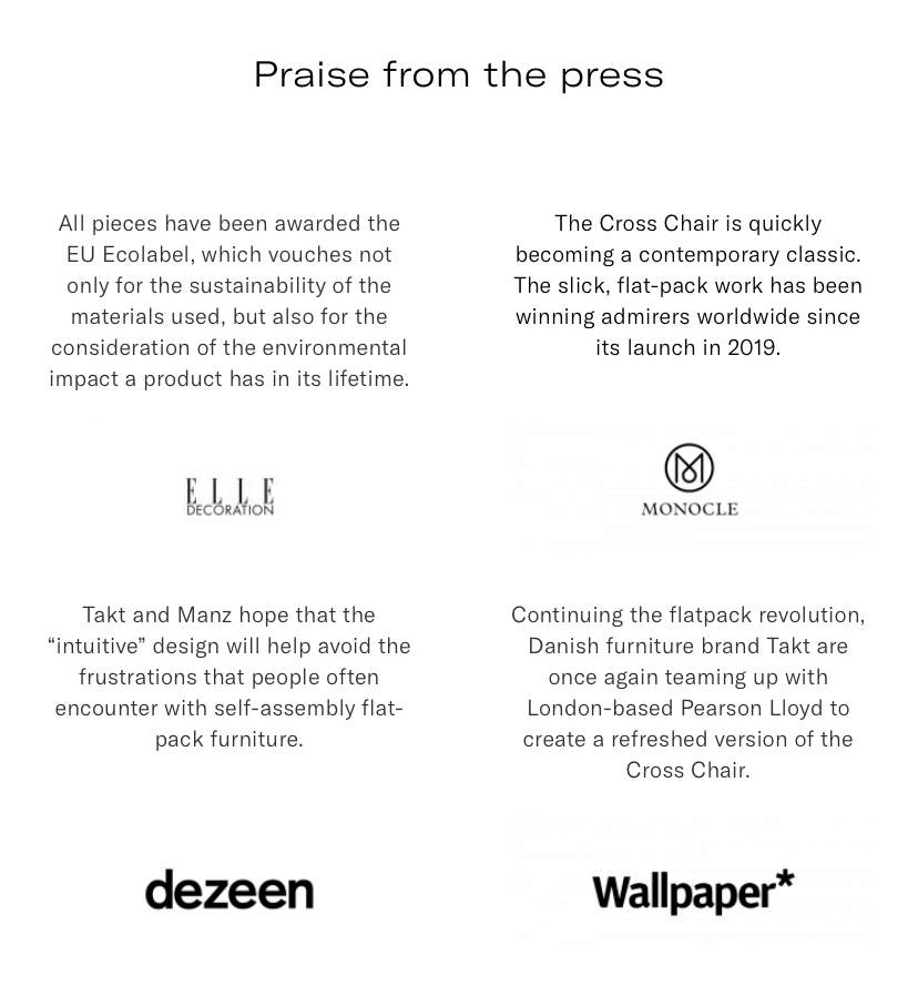 To us, TAKT has a mission where sustainability, longevity and truthful economy are equally thought about in all that they do. This is what ‘Good Design’ is all about, and what we are dedicated to.