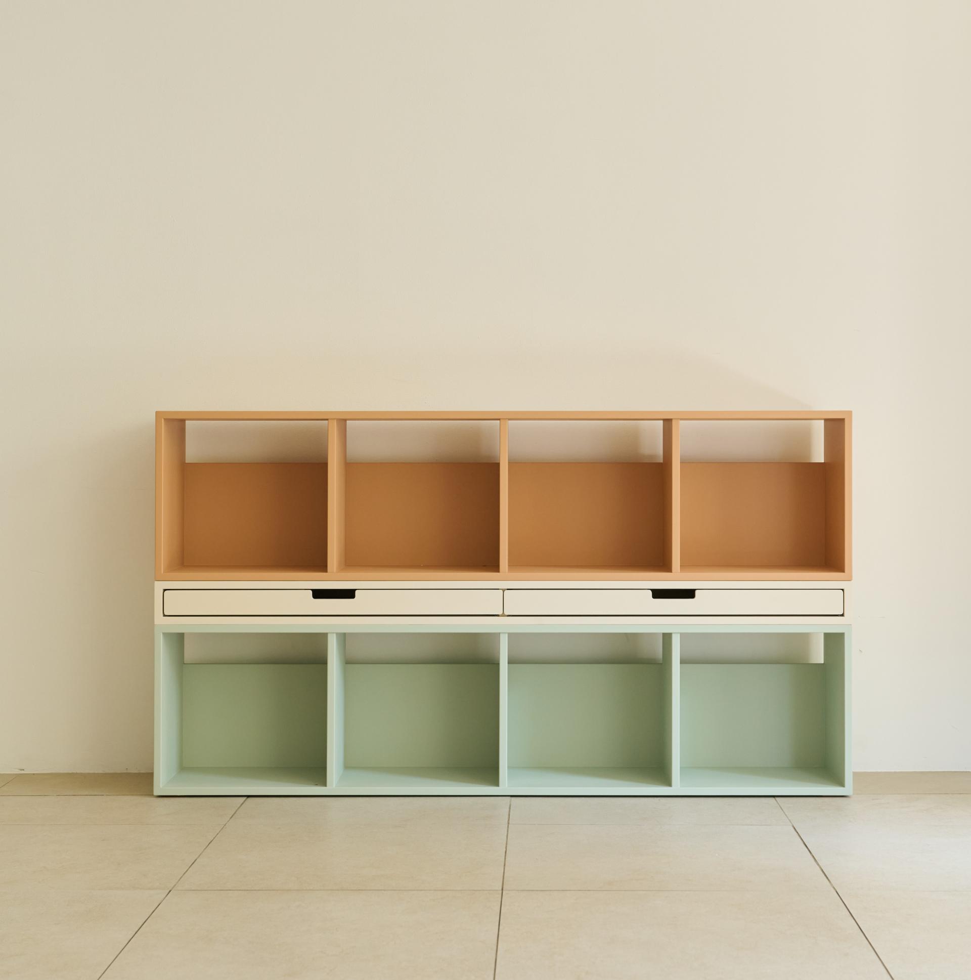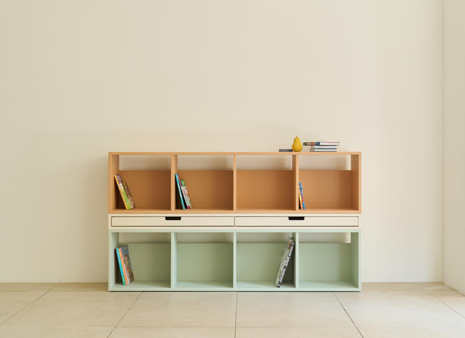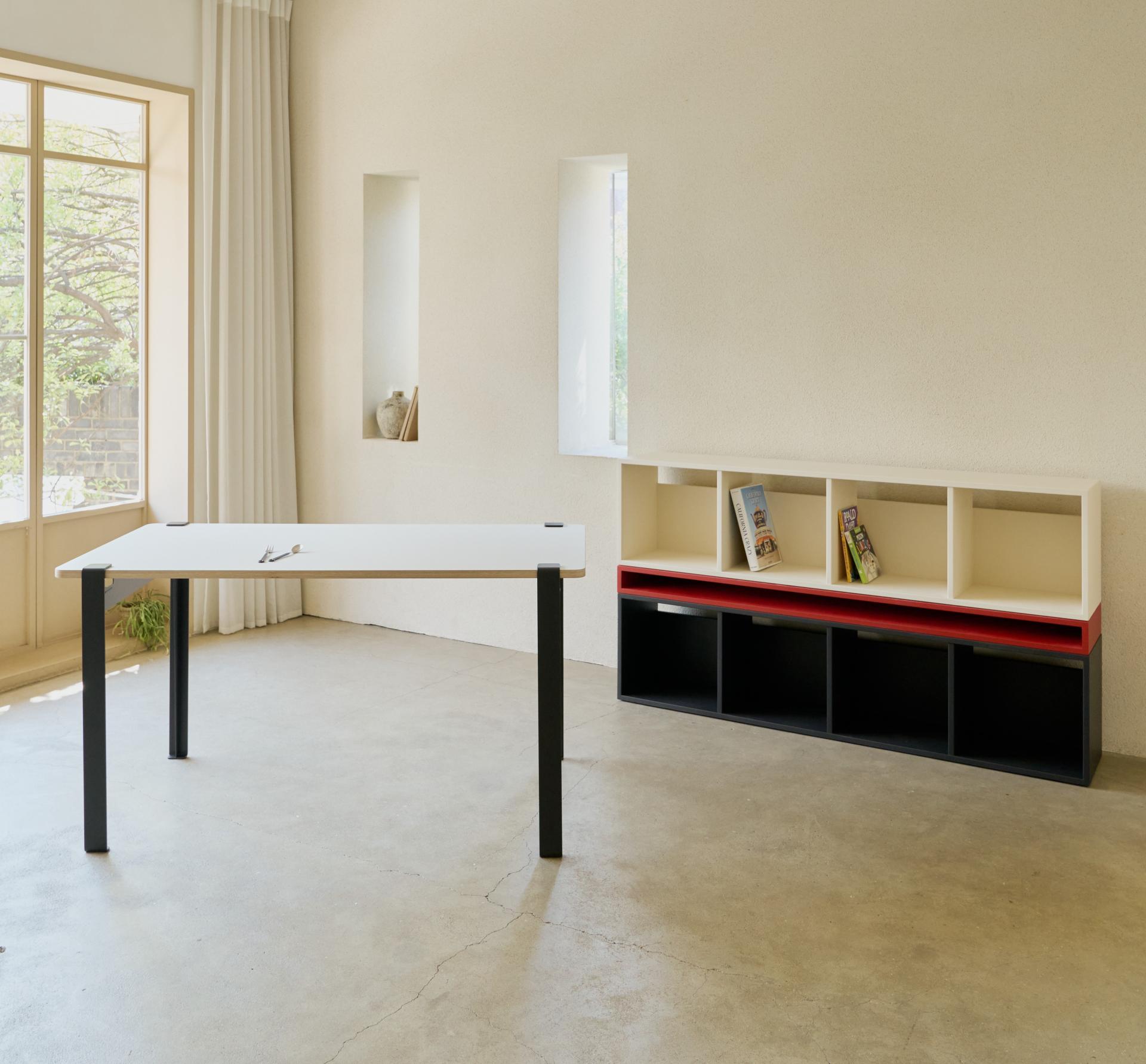 MU.Bridge Cubby (뮤 브릿지 커비)는 상단과 하단 사이에 수납 공간을 추가하여 서류나 스케치북 등을 손쉽게 보관할 수 있도록 설계되었습니다.