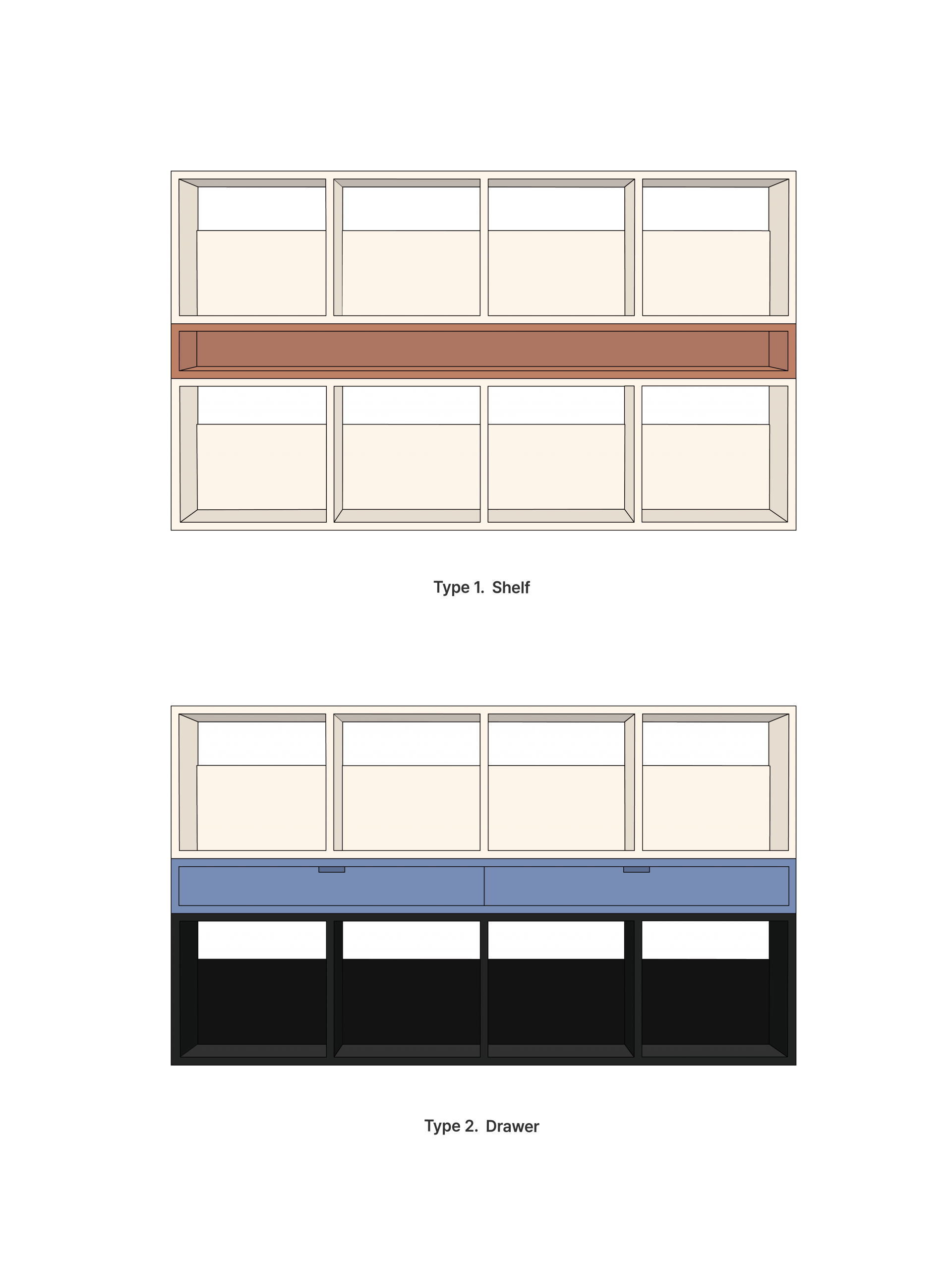 | 1. Shelf 선반 | 2 .Drawer 서랍 |