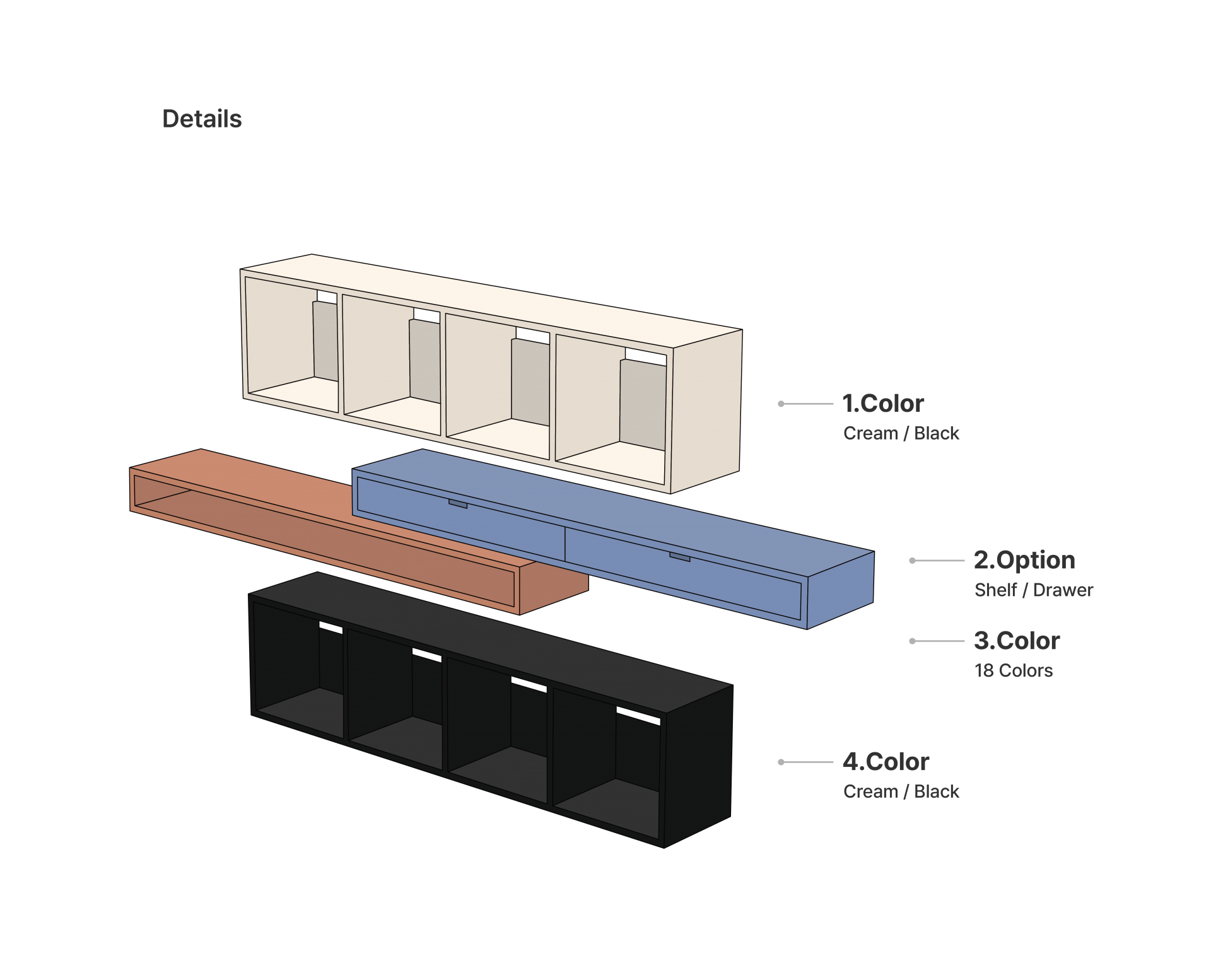 옵션에 따라 선반형 또는 서랍형을 선택하여 활용도를 더욱 높일 수 있습니다.