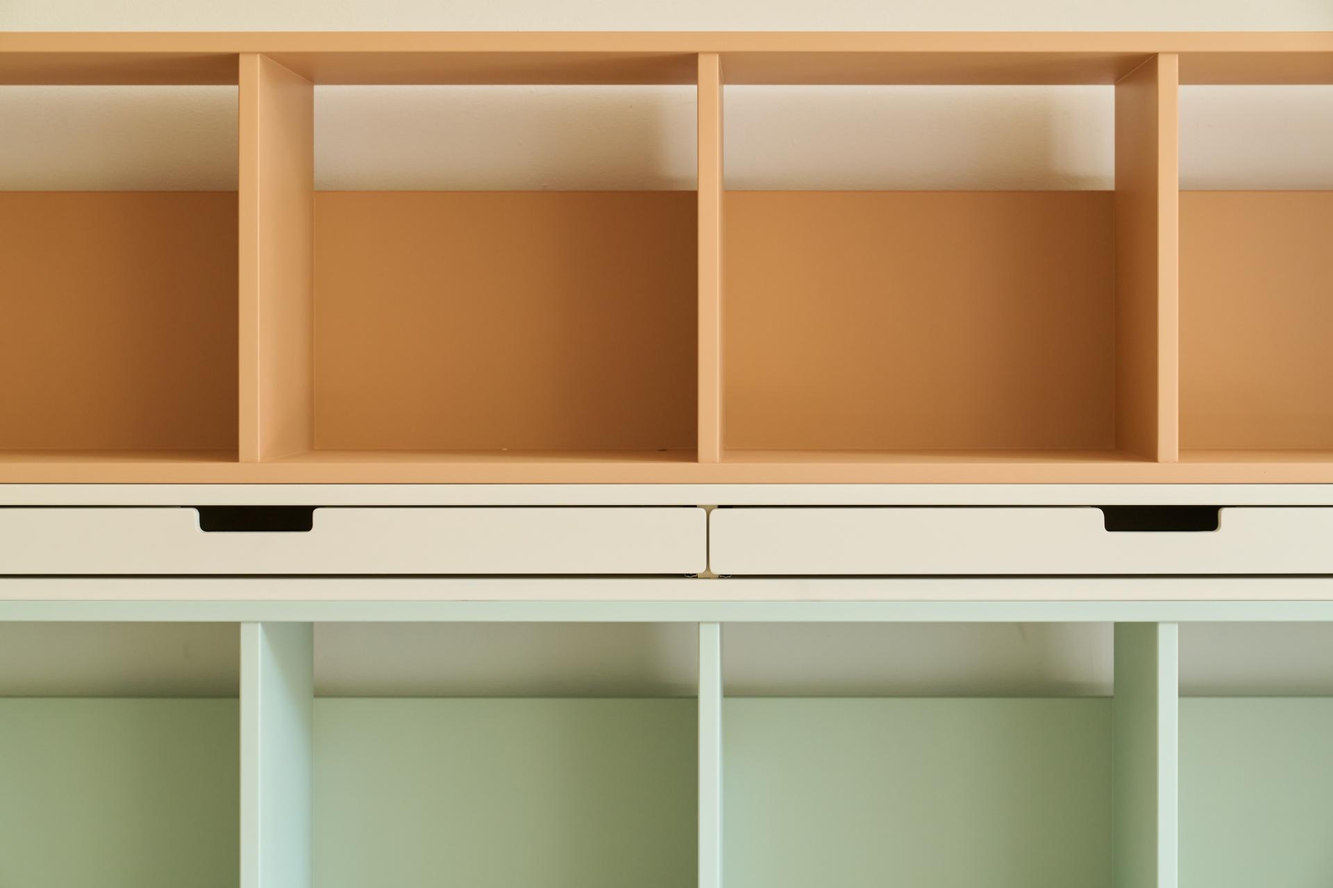 수성 페인트 도장 방식은 일반 HPL 필름으로 처리한 마감과는 완전히 다른 고급스러운 퀄리티와 나무 질감을 제공합니다.