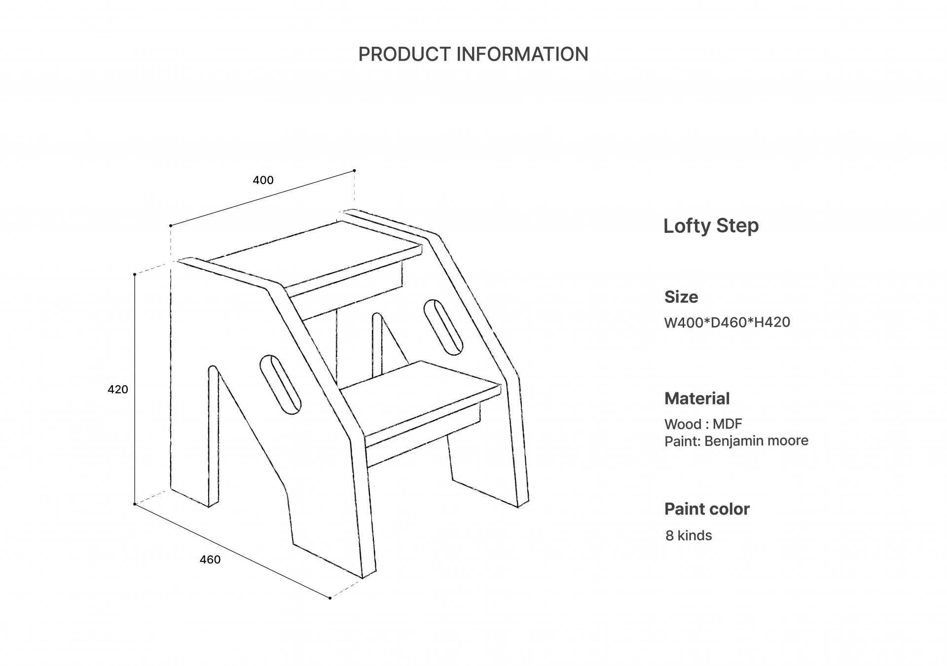 Lofty Step(로프티 스텝)은 미니멀한 디자인 속에 세심한 안전성과 실용성을 담아낸 침대 전용 계단입니다.