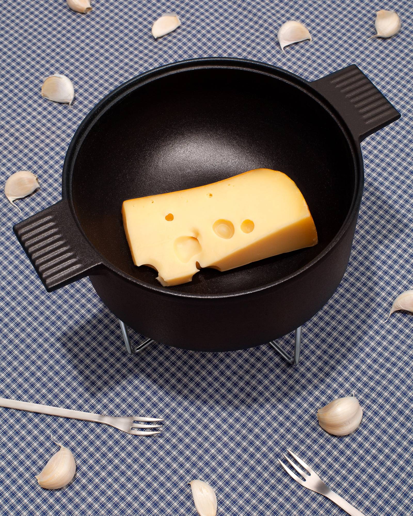 모노 퐁듀는 애나멜 냄비, 와이어 스탠드, 버너 구성되어 있습니다.