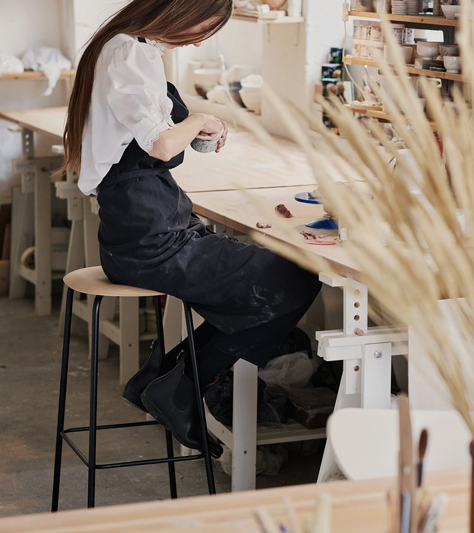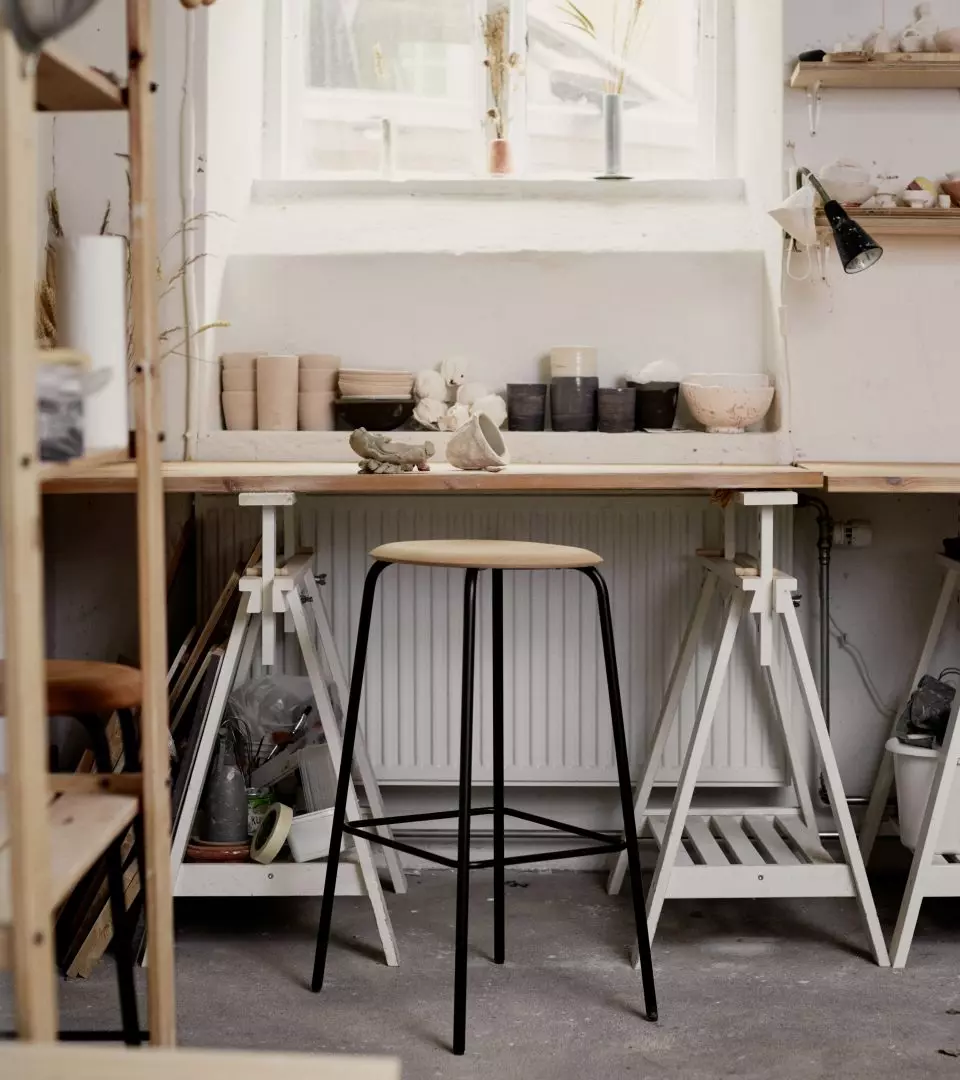 Special attention has been given to the balance of materials in Studio Bar Stool’s design. The slender steel tubes lend a light, modern and airy appearance to the bar stool, whereas the wooden seat provides warm, tactile comfort at the contact point. The result is a bar stool that is easy to move around the home or workspace, providing a comfortable, familiar seat wherever you need it.