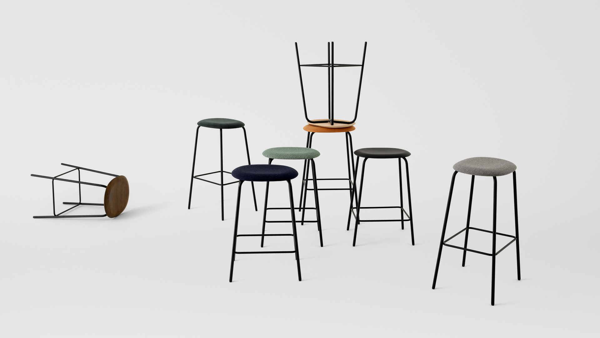 We have curated a selection of materials and colours that all fit well together. The seat can be customised with a variety of Kvadrat wool fabrics and aniline leathers from Sørensen Leather, so you can make your bar stool naturally blend in with your personal interior. All fabrics are of course eco-labelled and our leathers have received the Nordic Swan Ecolabel.