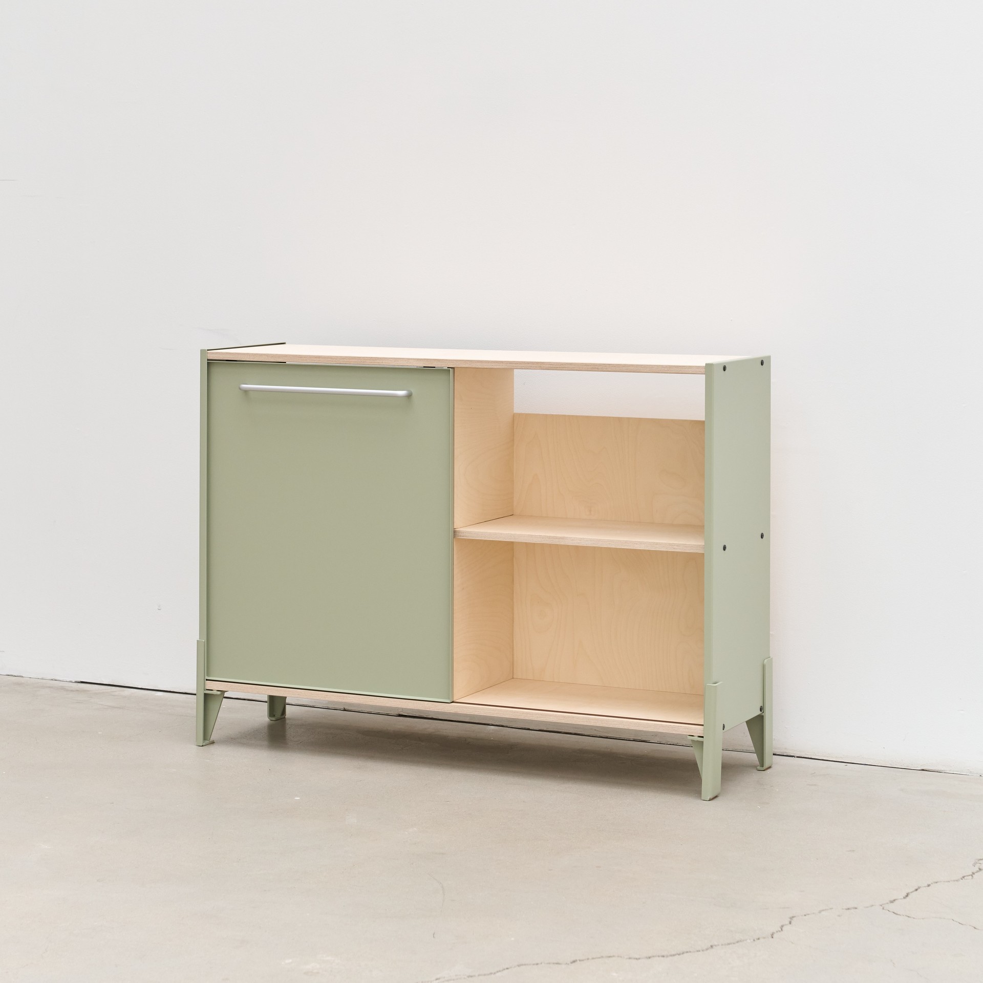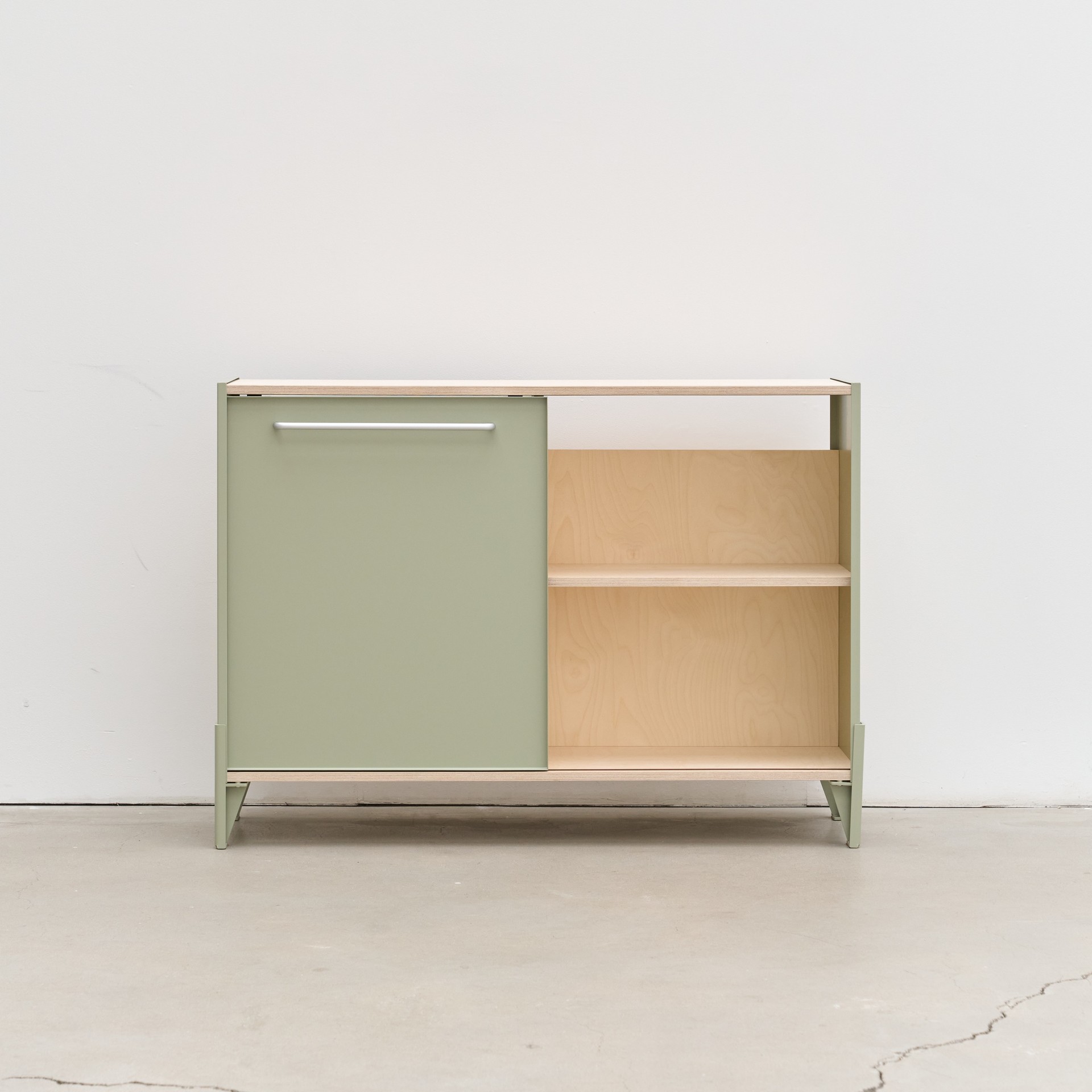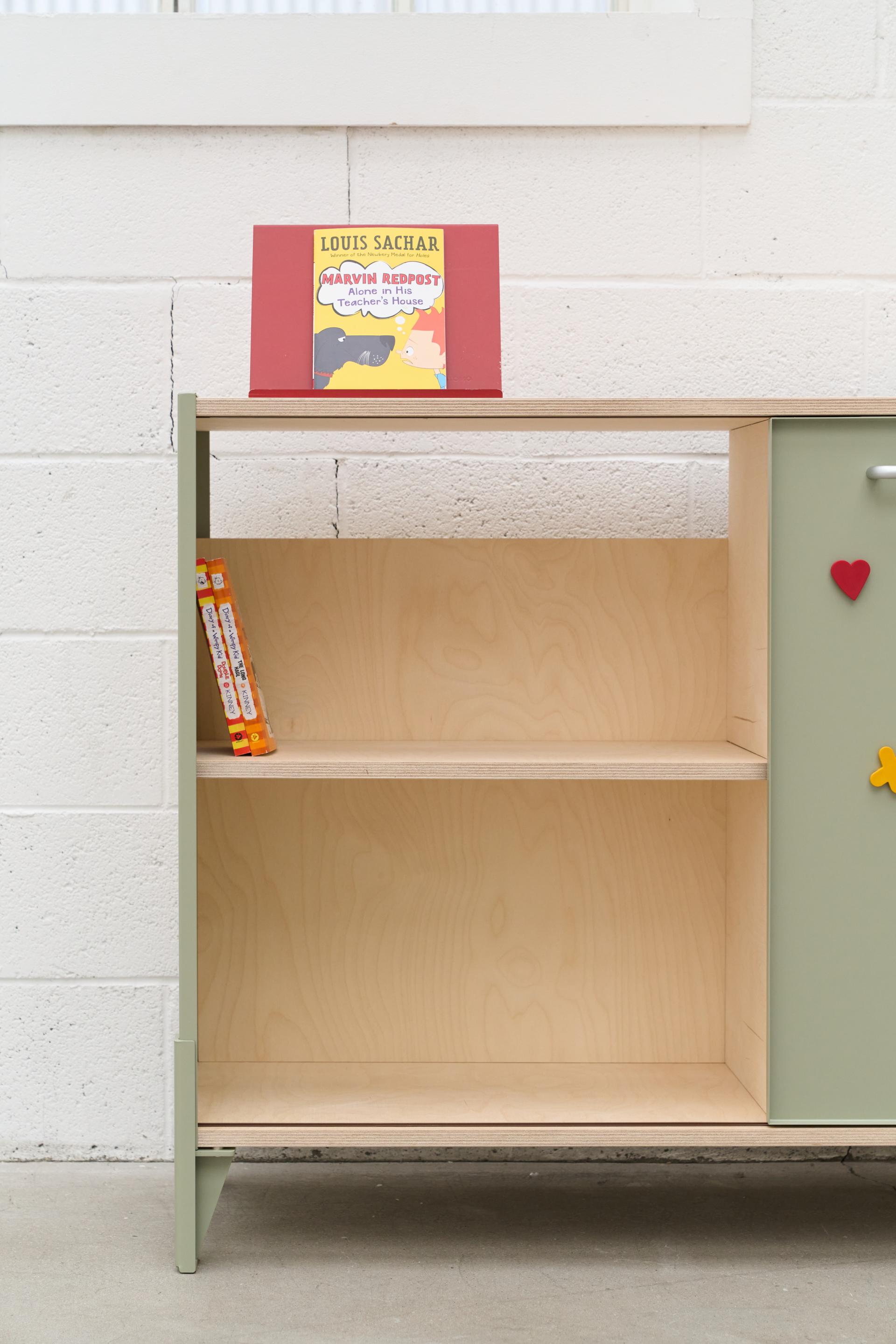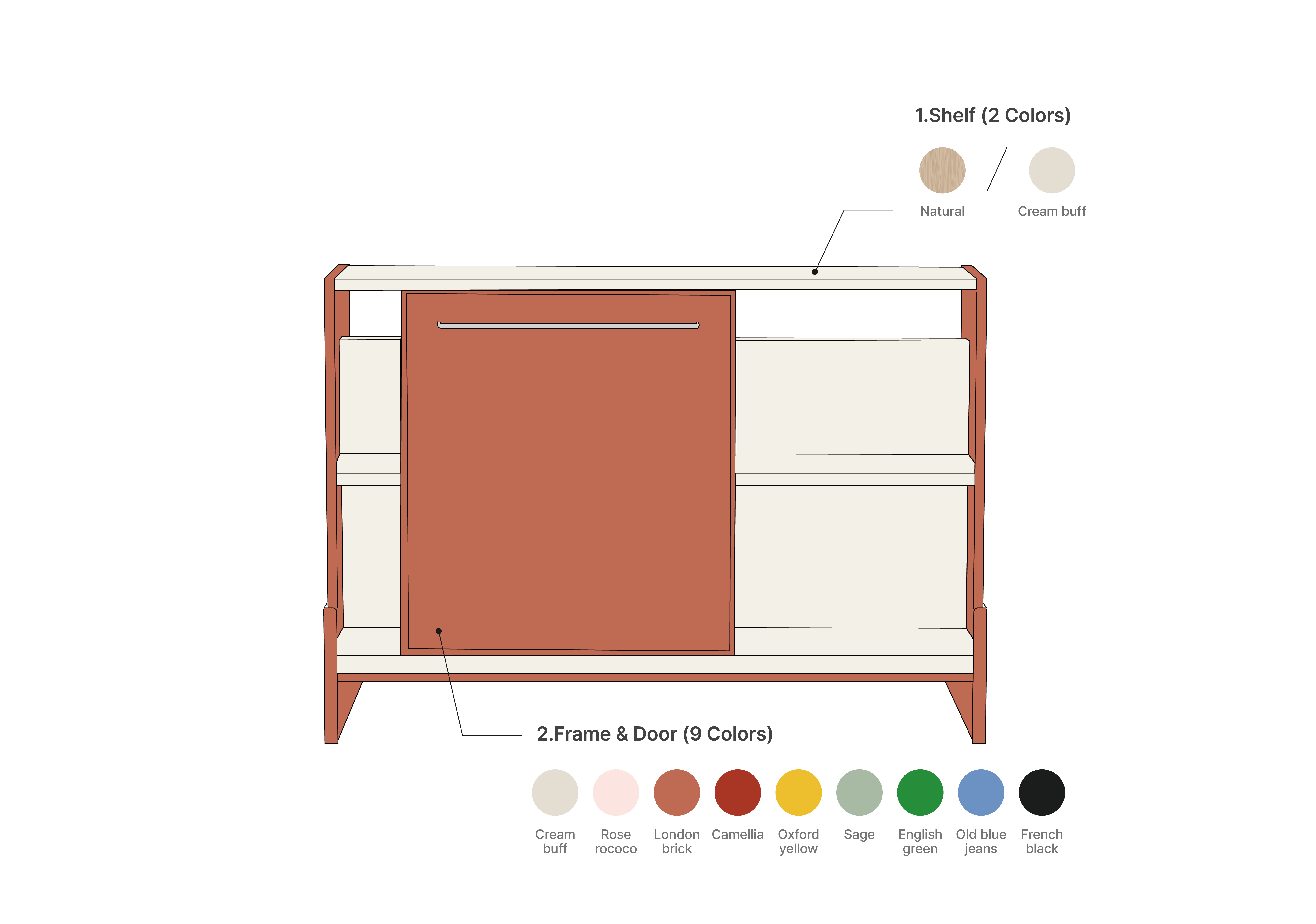 1. Shelf Color - Natural finish / 2. Frame & Door Color - Sage