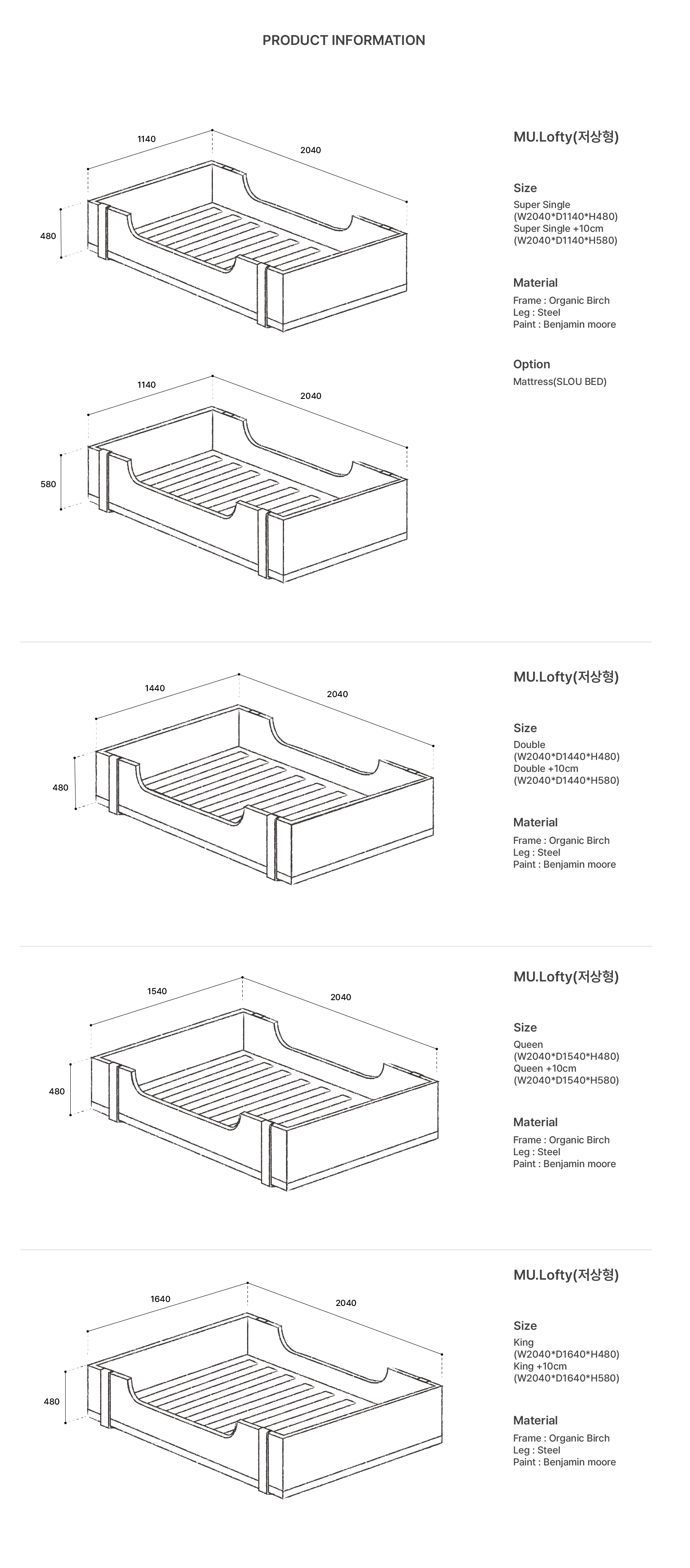 *해당 매트리스는 슬로우베드(Slou bed)에서 뮤로프티 전용으로 맞춤 제작된 매트리스입니다.