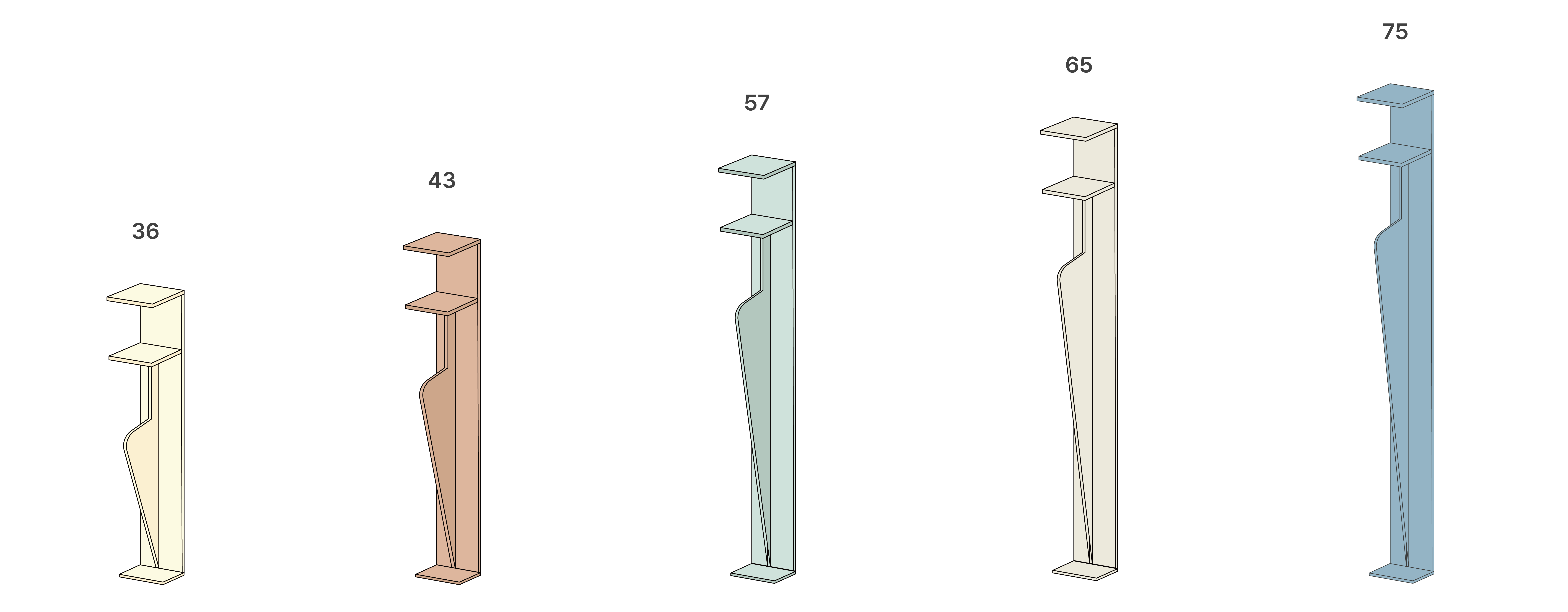 클리퍼 레그 높이는 36cm, 43cm, 57cm, 65cm, 75cm 높이 중에서 선택할 수 있습니다.