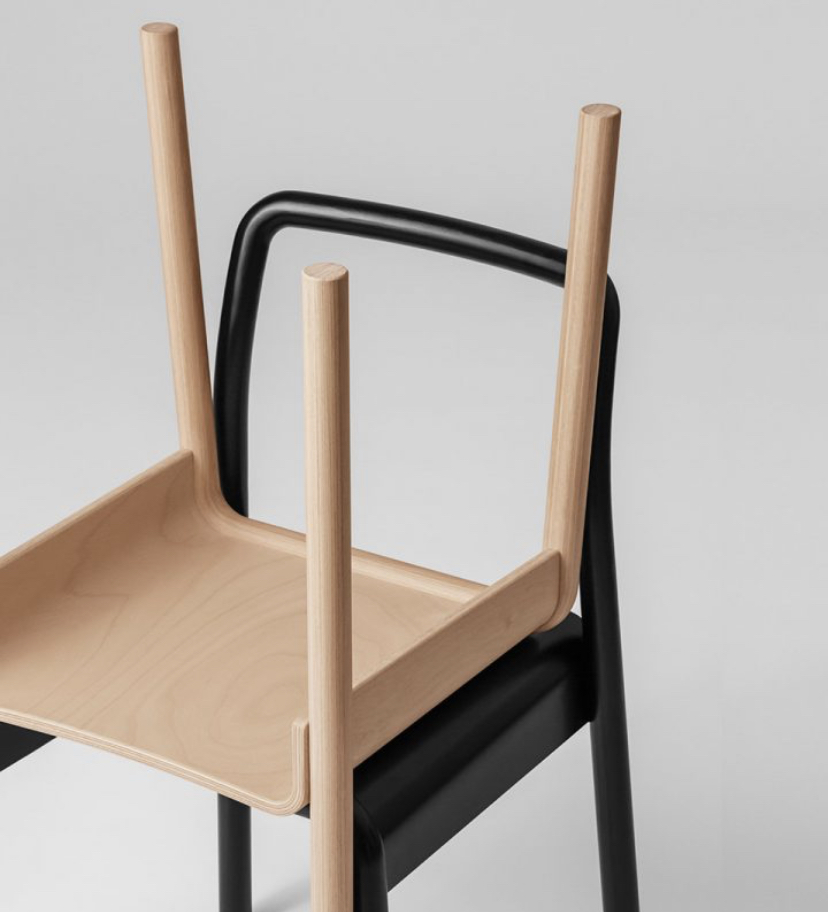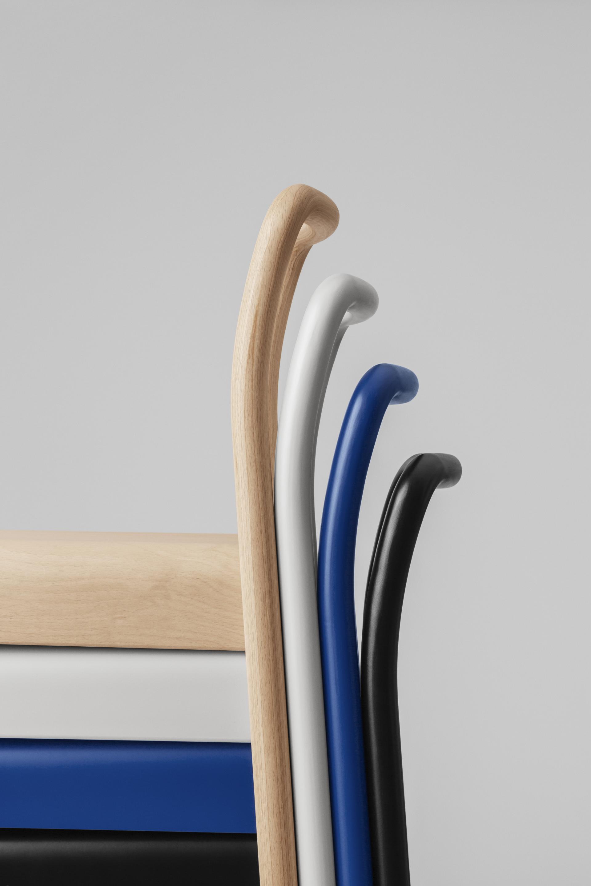 Tool Chair embodies a balance of lightness and gravity. Its seat, made of moulded veneer, epitomises the meeting of craft and industry in its delicate and sculptural qualities. The bends in the frame result in both minimal waste materials and an intriguing modesty.